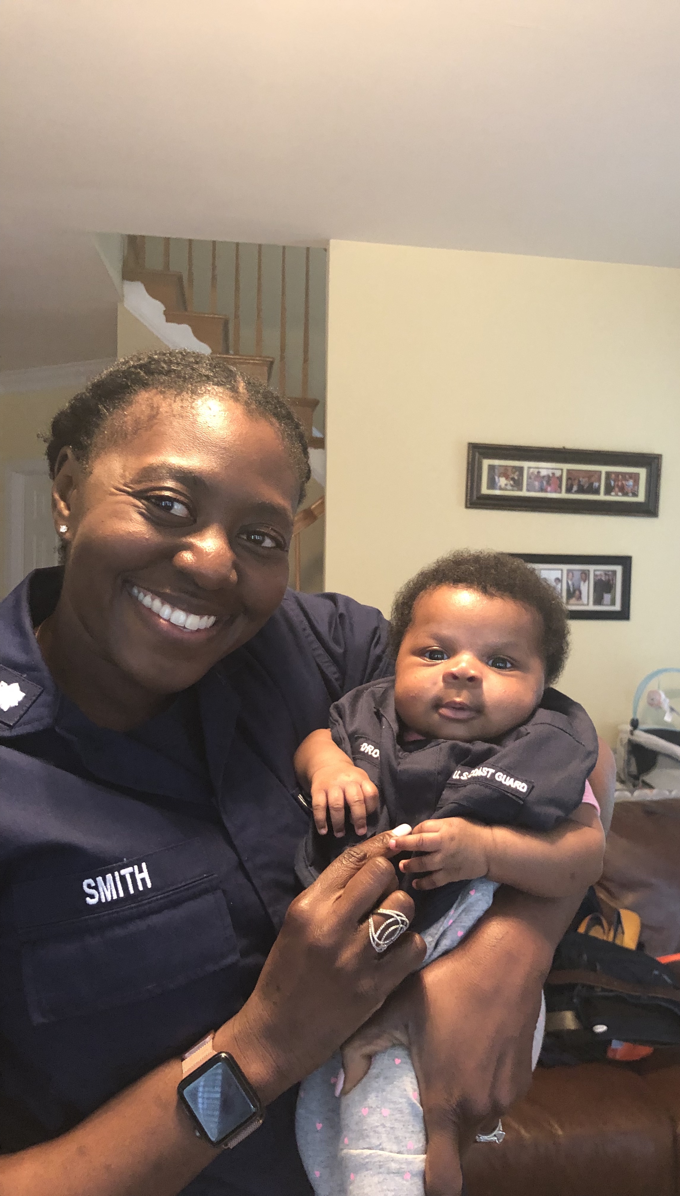 Andrea with Parker, born Feb. 11: “Andrea is a commander in the US Coast Guard and ‘Seaman Drooler’ was excited to see her when she got home from work.”
