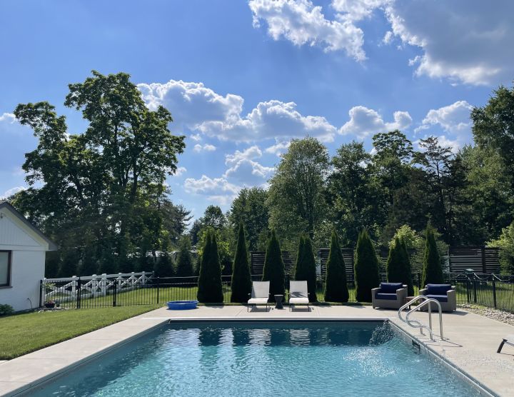 In our leisure time, we love being outdoors and staying active. Most of our hobbies revolve around spending time outside together. One of our favorite things about our home is having a pool in our backyard. It allows us to host family and friends for gatherings where we can swim, relax, grill, and enjoy meaningful time together. These moments are some of our favorite ways to connect and create lasting memories.