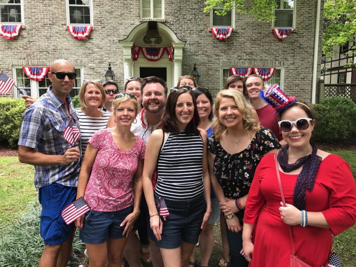 We attend a Fourth of July neighborhood parade with a potluck that feels like it's right out of a Norman Rockwell painting with a small orchestra playing patriotic songs and a dramatic reading of the Declaration of Independence.
